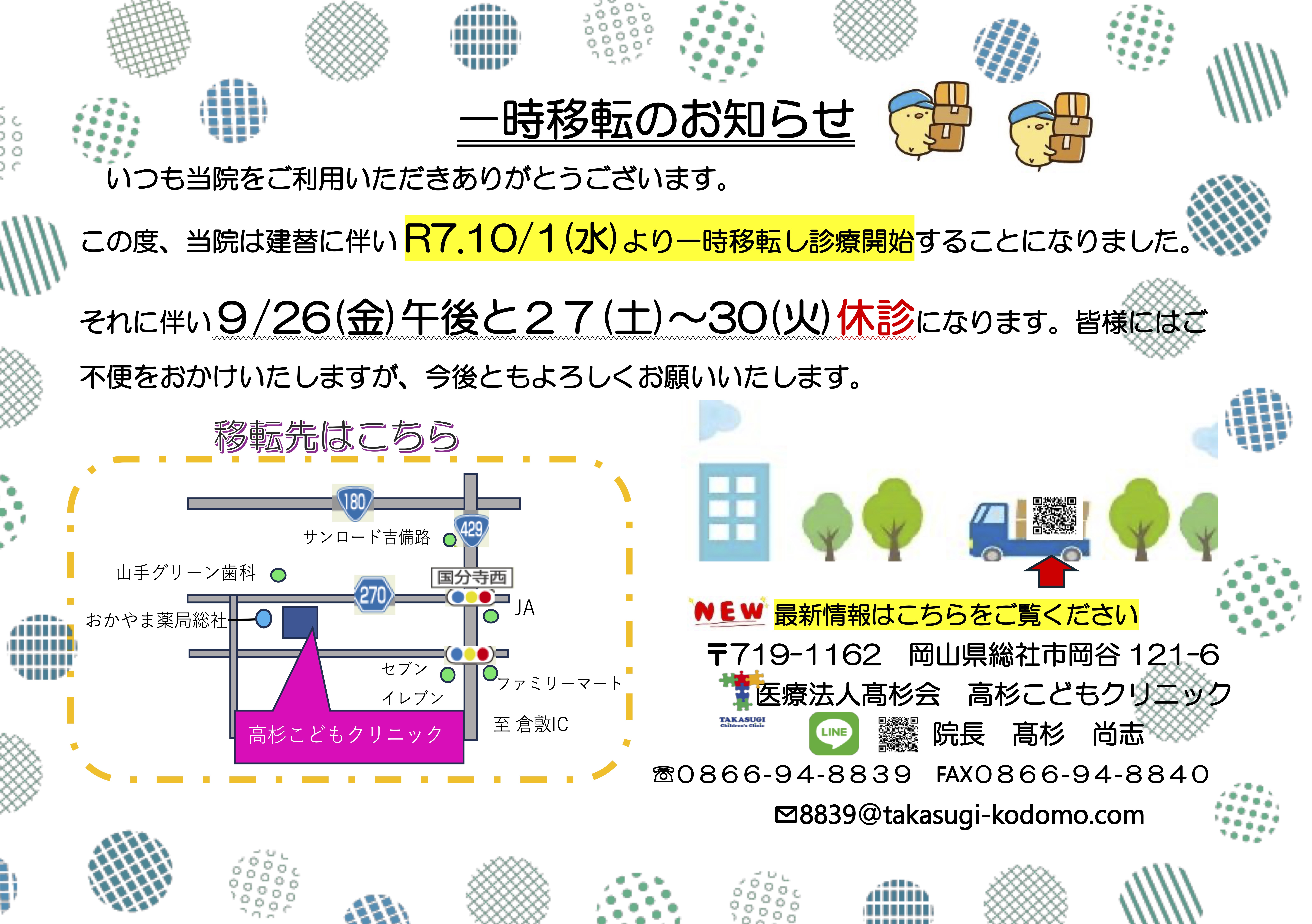 この度、当院は建替に伴い 10/1(水)より一時移転し診療開始することになりました。